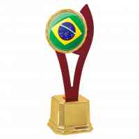 Troféu 401061-DVMME - Troféu com 45 cm de altura, base oitavada em polímero metalizado na cor dourada com 14,5 cm de largura, sobre esta base um cone metalizado na cor dourada e sobre este cone uma placa vazada na cor vermelho metálico e leito personalizável para adesivo de 135 mm, metalizado na cor dourada. Placa para gravação.
